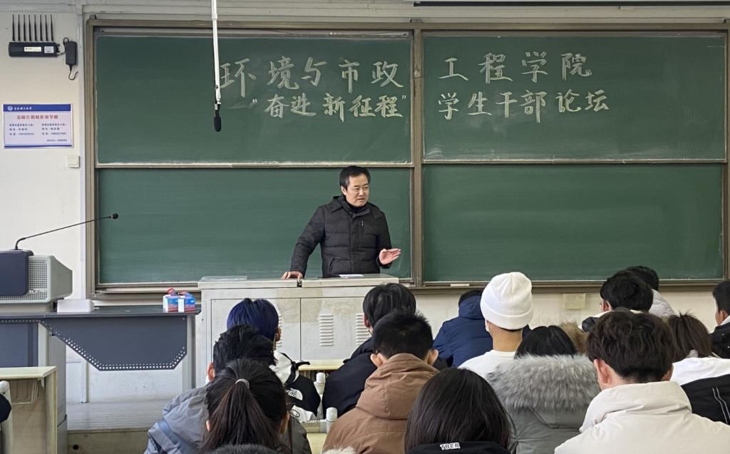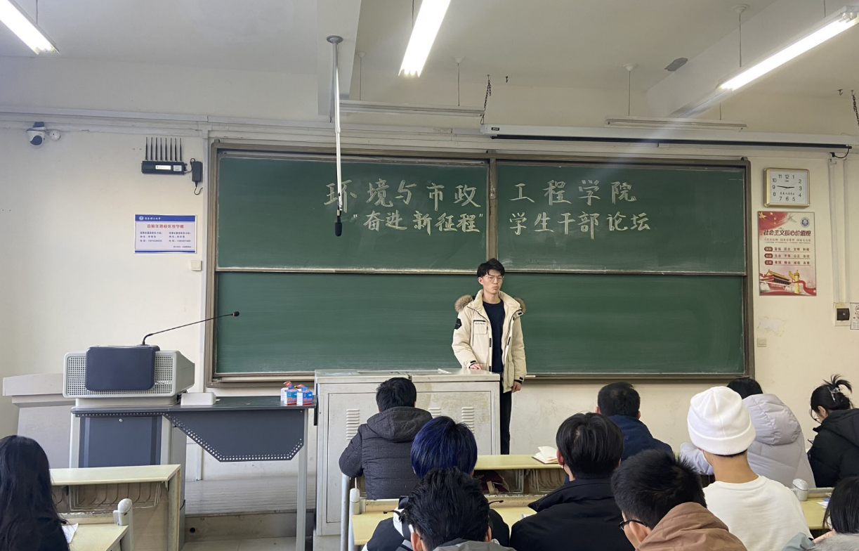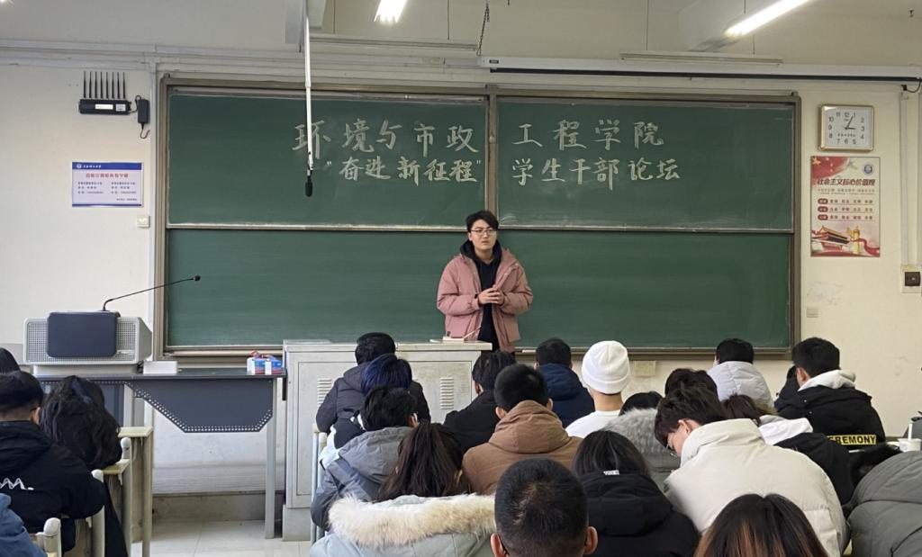 岁末年初,辞旧迎新,总结2020,展望2021。12月31日,环境与市政工程学院“奋进新征程”学生干部论坛在嘉陵江路校区主教学楼B208教室召开。学院党总支副书记邵长飞和辅导员岳磊、李卓、董业硕、何珊珊、宫克菲参加论坛,学院团支书、班长、学生会和分团委学生骨干参加论坛,何珊珊主持论坛。