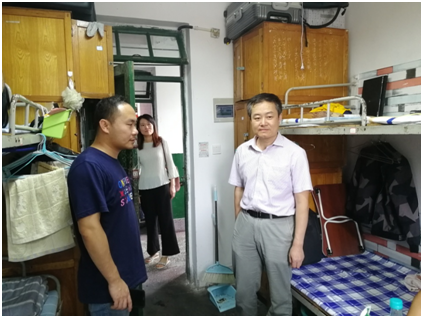 为深入了解同学们返校情况、思想动态及排查各类安全隐患,保障新学期各项教学管理工作的顺利开展,8月26日环境与市政工程学院党总支副书记邵长飞,学工办主任兼分团委书记张恬及学院全体学生工作干部深入学生公寓开展走访检查工作。