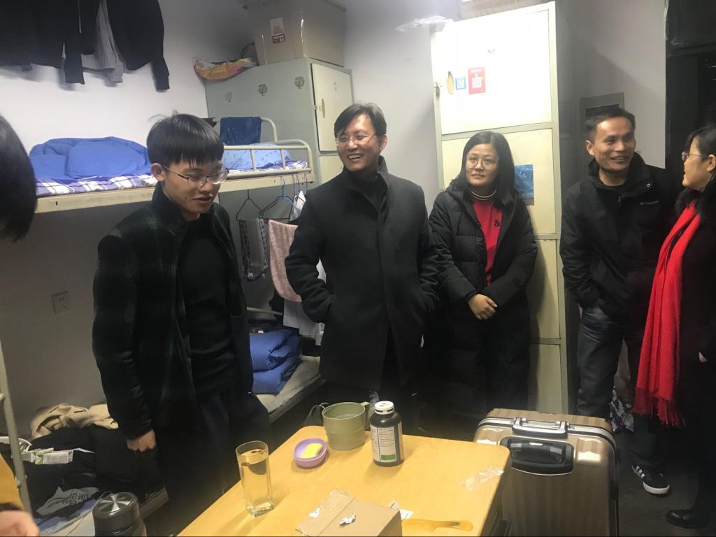 走访过程中,老师们和学生亲切交谈,了解学生假期生活及新学期学习、生活方面的需求。同时,鼓励同学们新学期、新征程,为了更广阔的目标努力学习,锻炼身体,全方位提高自己。最后,提醒同学们要注意宿舍通风、被褥晾晒、保持良好的生活习惯,重视春季传染病预防等工作。邵长飞副书记就宿舍卫生、晨检、垃圾出公寓等工作做了具体指导。