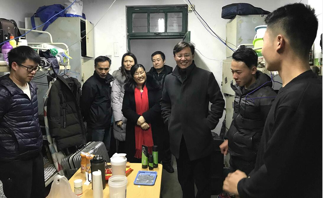 2月24日、25日,环境与市政工程学院党总支书记马莉、院长毕学军、副书记邵长飞带领辅导员来到1公寓、2公寓、3公寓、甲楼和宏业大学生公寓走访学生宿舍,看望返校学生。
