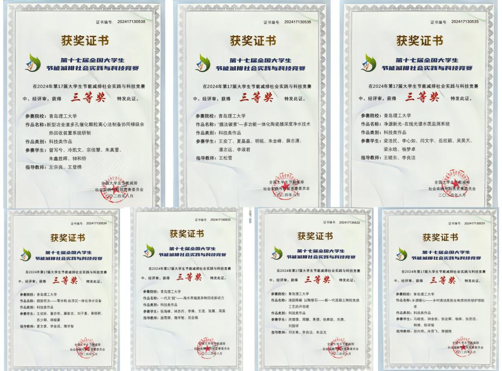 2024年8月4日至7日,以“节能减排、绿色能源”为主题第十七届全国大学生节能减排社会实践与科技竞赛决赛在山东省青岛市中国石油大学(华东)成功举行,经激烈角逐,环境与市政工程学院学生斩获全国三等奖7项,学院荣获全国“优秀组织奖”。