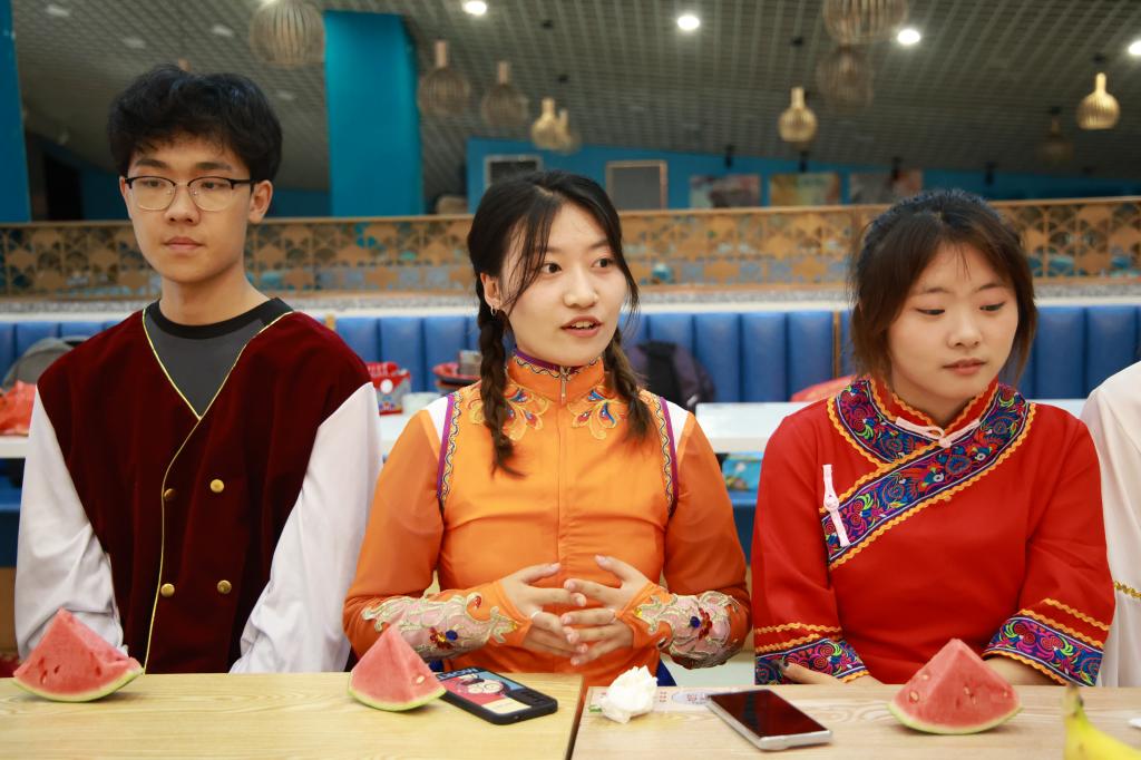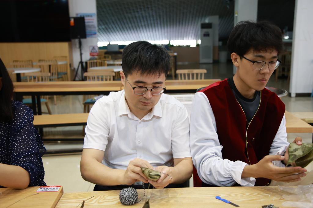 在等待粽子蒸熟的过程中,部分有民族服装的学生穿上了自己民族的衣服,并表演了具有民族特色的节目。每个民族的学生也都分享了自己民族在端午节的风俗习惯,设备232班陈英达是俄罗斯族学生,他说:“我们俄罗斯族在日常生活中喜爱吃面包、奶油等食品,在端午节这天除了吃粽子以外还有吃列巴的传统,我们还有特有的传统节日彩蛋节,这一天我们会将鸡蛋煮熟包上彩纸,送给亲朋好友表示祝福,这一天的隆重程度不亚于汉族的春节。”建环221班李知原是朝鲜族学生,他说:“我们朝鲜族在端午节经常开展一些体育运动比赛,有荡秋千、摔跤、足球、排球、乒乓球等。家里还会做艾糕、蒸饼、做小豆包的习俗,也会喝一点浊酒避邪气。”随后,大家一起品尝了香喷喷的粽子,并分享了入学后个人学习、思想情况,部分汉族学生代表也分享了自己家乡的端午节风俗,现场气氛热烈,师生交流中传递了浓浓的感情。活动最后,隋学智代表学院给少数民族学生送去了祝福与关怀,询问了同学们在校期间的不适与困惑,并勉励同学们勤奋苦学、矢志奋斗,争做有理想、肯奋斗的新时代好青年。