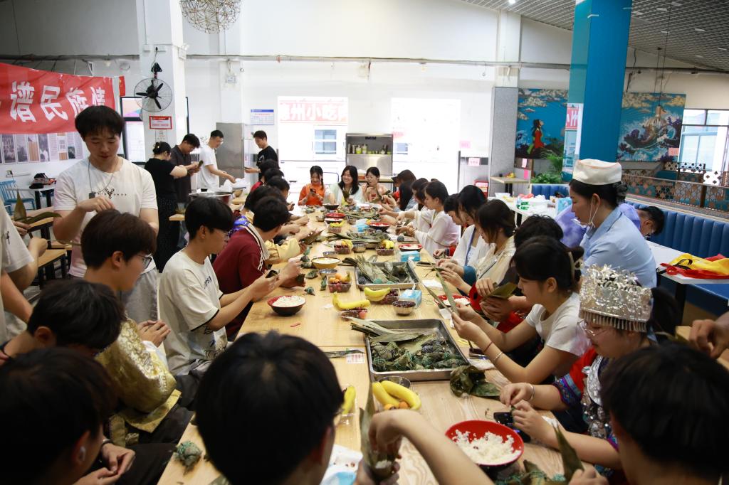 为增强中华民族共同体意识,弘扬优秀传统节日文化,在端午节到来之际,环境与市政工程学院组织开展“粽情话端午 共谱民族情”端午节少数民族学生包粽子、茶话会活动。环境与市政工程学院党委副书记、副院长隋学智,副院长刘龙,辅导员、班主任老师出席活动,学院少数民族学生代表40余人参加活动。