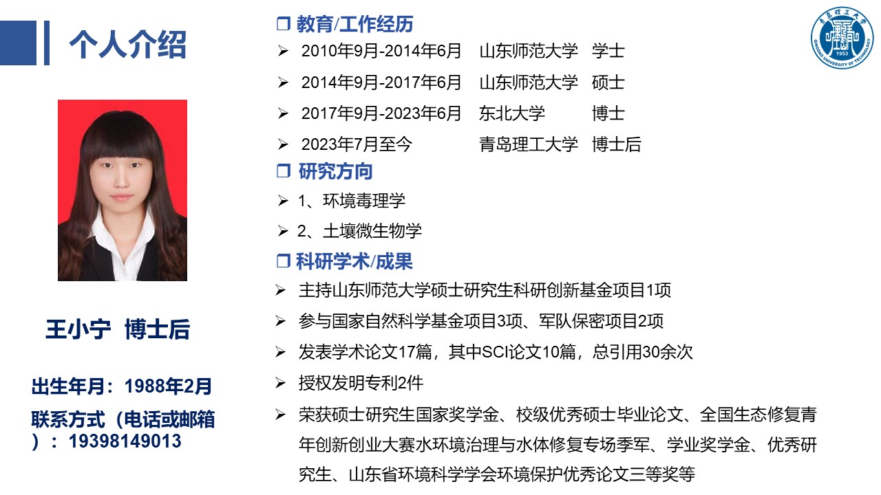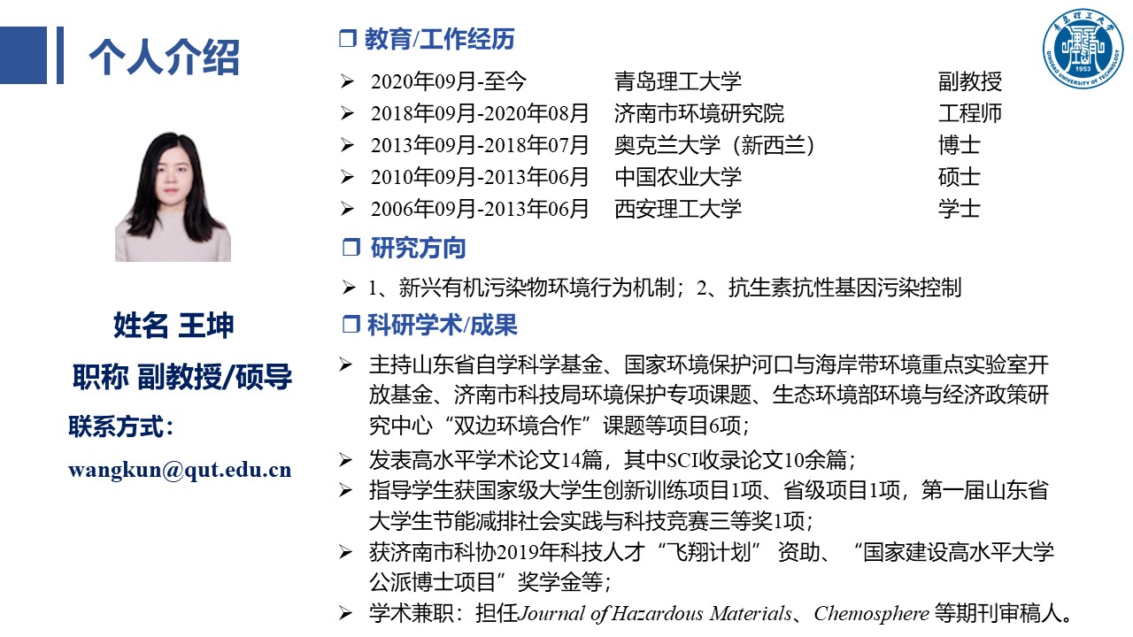 滨海土壤污染修复及新兴污染物的环境行为团队: